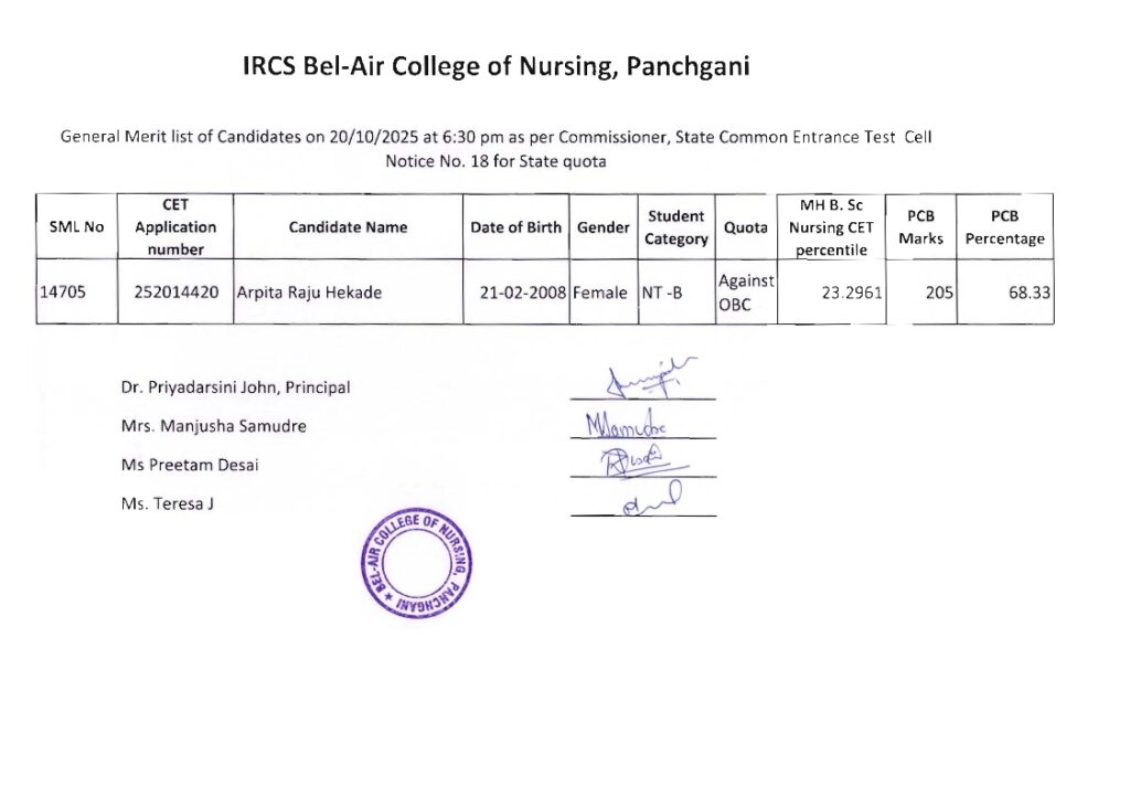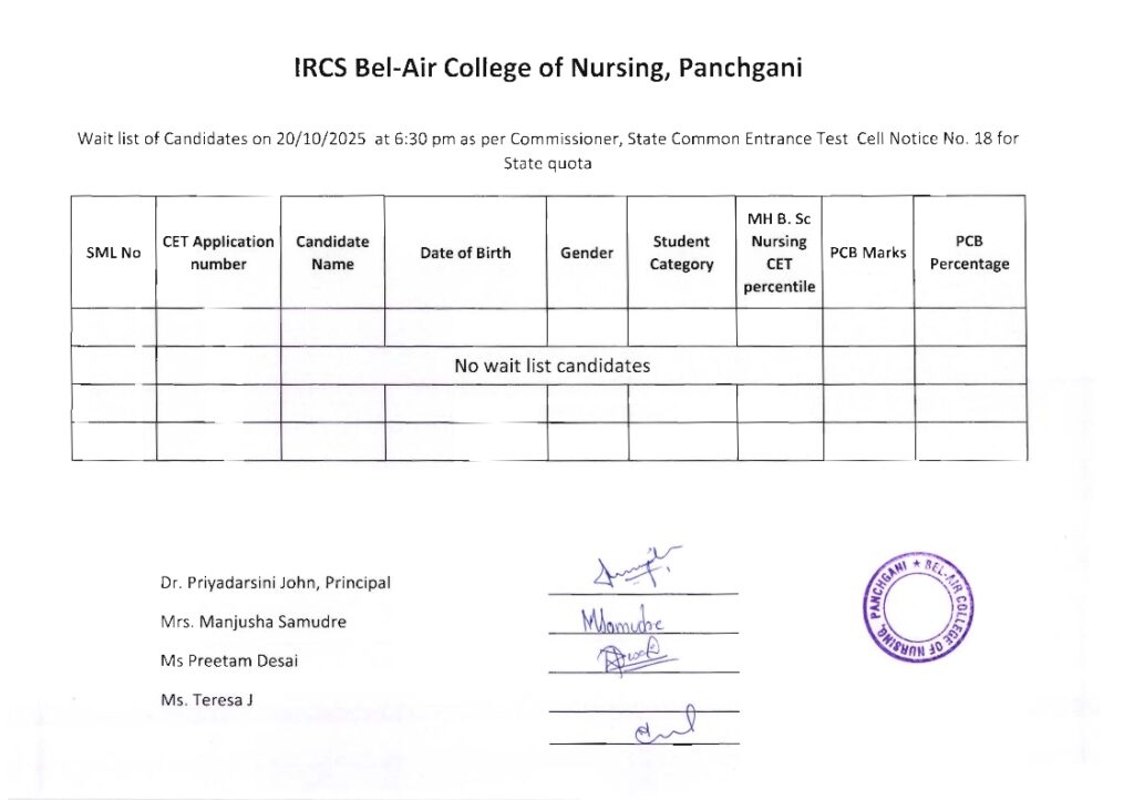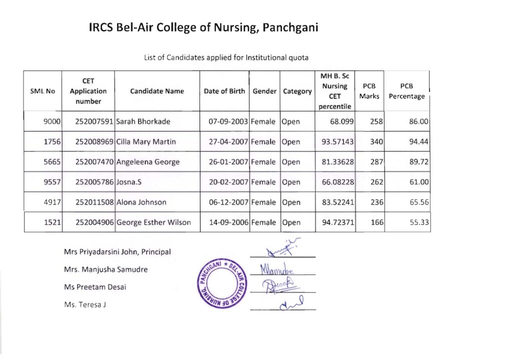 Various scholarships are made available for meritorious students.For B.Sc and M.Sc Nursing