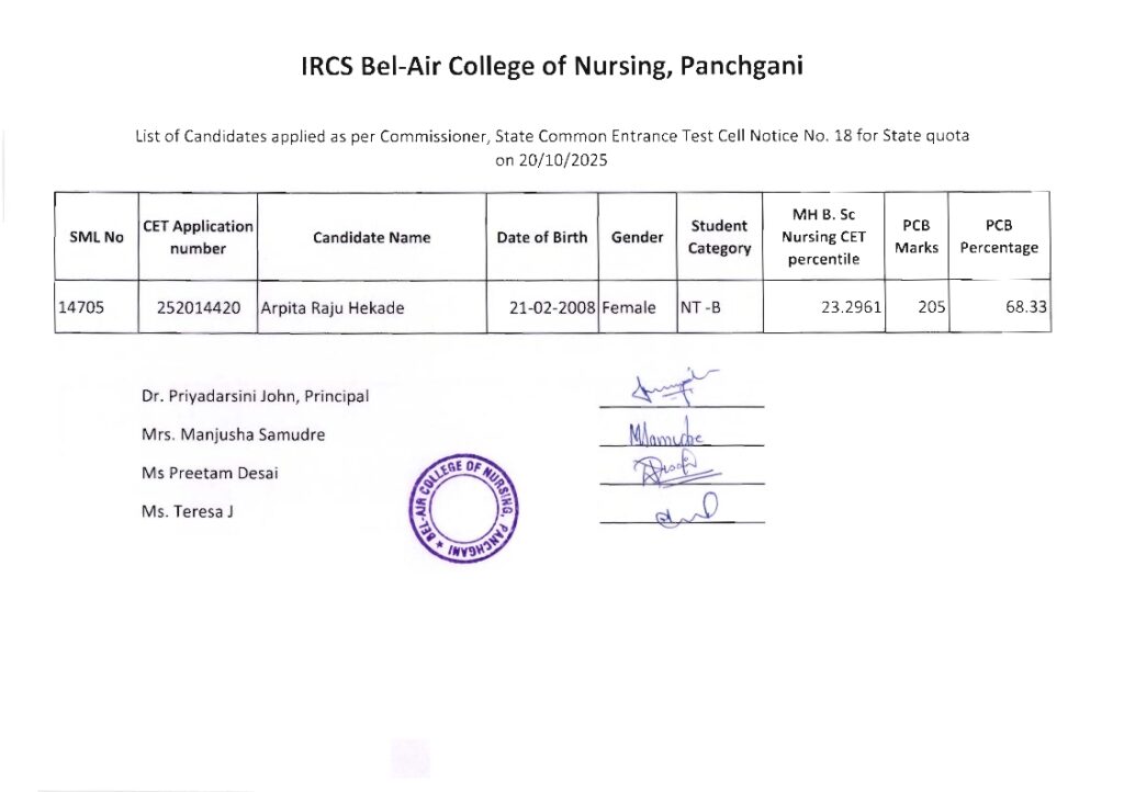बी. एस्सी नर्सिंग - रु. 71000/-